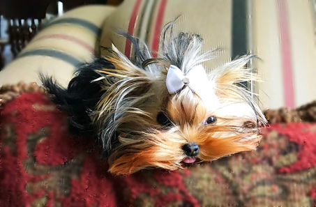 I could never thank you enough for the opportunity to own and love one of your precious puppies. From my first email with you, I knew that I could trust you. It is really scary to shop for a puppy and especially on the Internet. You welcomed us to your home and made us feel like part of your family. I was so happy to see how much you care about the homes you place your babies in. Life has not been the same at our house and we cannot imagine life without our precious little Tinkerbell. She is beautiful and we get so many compliments on her everywhere we take her. She immediately loved our grandchildren after being loved by your sons. She never meets a stranger and has kisses for everyone. People immediately fall in love with her. She has the cutest and sweetest personality. She gets along great with every dog she has ever met and loves Molly (our Maltese). She has been an excellent little eater since the day we got her. You told me her adult weight would be around three pounds, maybe 3 1/2 fat. She is going anywhere between 3 - 3.4 so you were exactly right. She is now 3 1/2 years old and has had no health problems at all. I could not ask for anyone to be more helpful and caring than you have been. You are very special to us. Your love for Yorkies shows in Tinkerbell's temperament and socialization skills. She is the best lap dog and snuggler that we've ever owned. We will definitely buy another one from you as soon as we can. We could not have found a better breeder anywhere!!